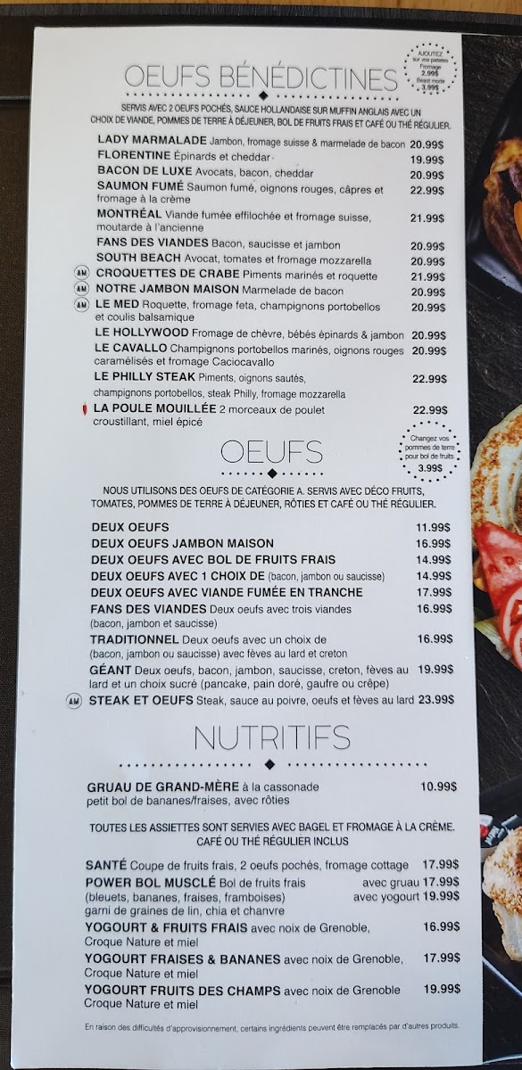 A.M Déjeuner Dîner - QC J5B 2E5 Menu